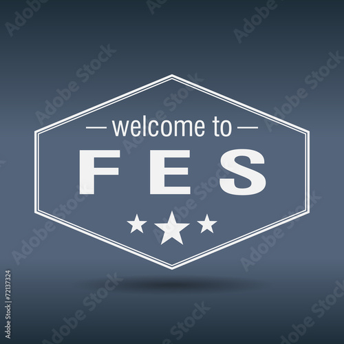 welcome to Fes hexagonal white vintage label