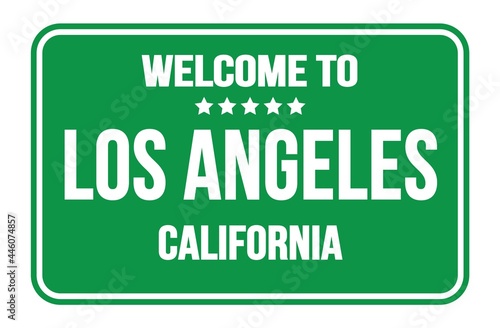 WELCOME TO LOS ANGELES - CALIFORNIA, words written on green street sign stamp