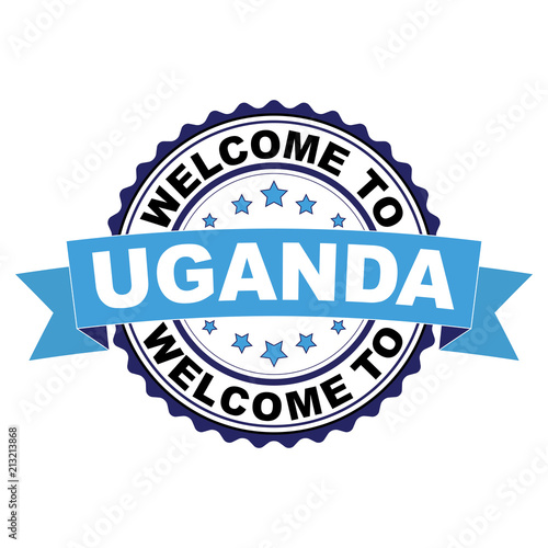 Welcome to Uganda blue black rubber stamp illustration vector on white background