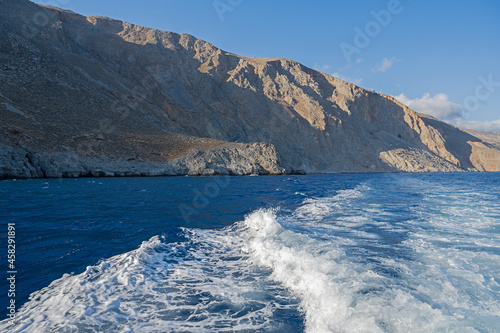 Wellen eines Motorbootes, bei Chora Sfakion,an der Südküste von Kreta, Griechenland