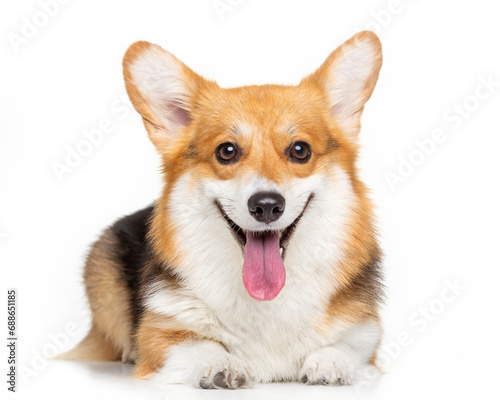 Welsh Corgi, dog, smile, portrait on a white background, isolate