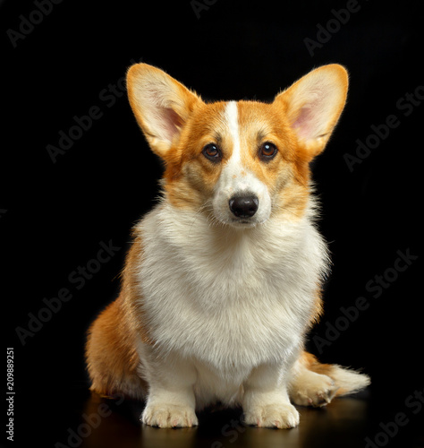 Welsh Corgi Pembroke Dog Isolated on Black Background in studio