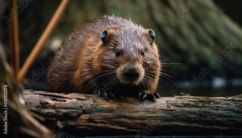 Wet beaver chomps on fish for lunch generated by AI