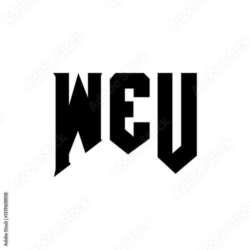 WEU letter logo design for technology company. WEU logo design black and white color combination. WEU logo, WEU vector, WEU design, WEU icon, WEU alphabet. WEU typography logo design.
