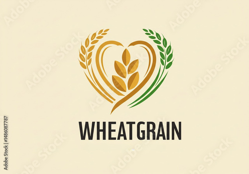 Wheat Grain Heart Logo Gold Green Agriculture Farm Field Food Natural Healthy Symbol Organic Bread