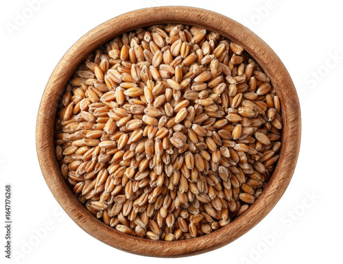 Wheat grains in wooden bowl