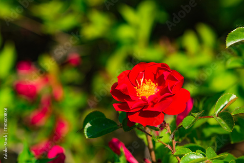 When the red rose flowers are in full bloom, a close-up of the rose flowers