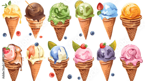 Whimsical assortment of colorful ice cream cones for your summer designs