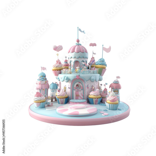 Whimsical Cupcake Castle A Sweet 3D Render of a Fantasy Bakery
