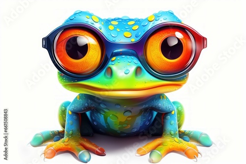 Whimsical Cute colorful frog. Tropical nature. Generate Ai