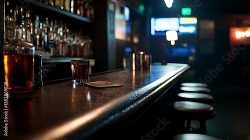 Whiskey Night Dark Bar with Empty Seats, and Cozy Ambiance.