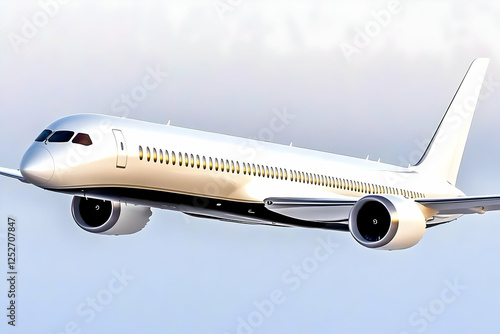 White Airplane in Flight 3D Illustration