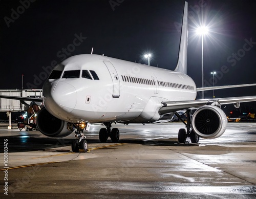 White Airplane Parked At Night Airport