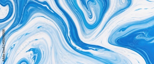 White and blue color with liquid fluid Abstract marbled texture painting background