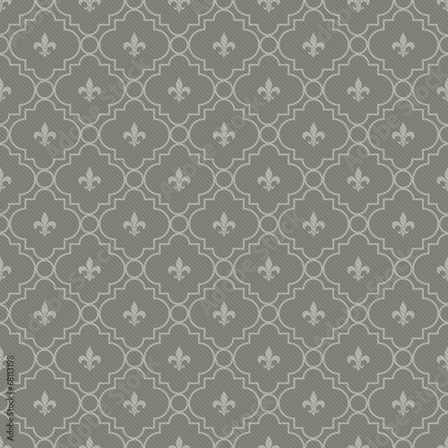 White and Dark Gray Fleur-De-Lis Pattern Textured Fabric Backgro