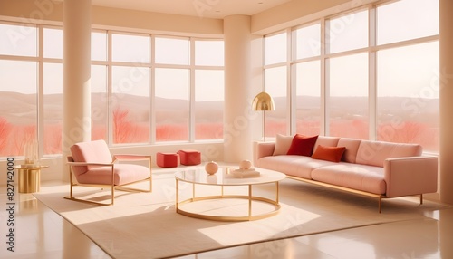 white and gold theme interior modern minimalism photo realism