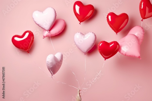 white and red heart of balloons pattern on pink background valentine abstract background made with AI