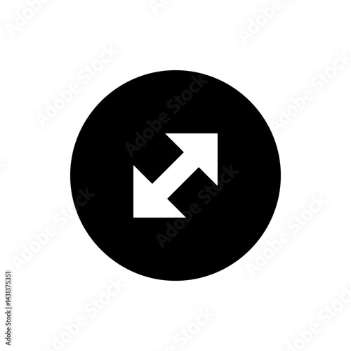 White arrows pointing in opposite directions inside a black circle graphic illustration design element