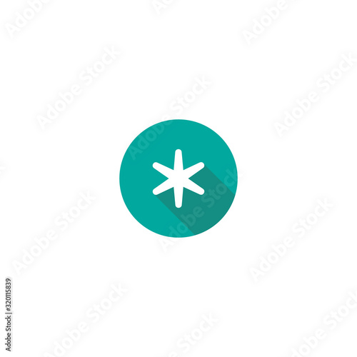 white asterisk footnote with shadow in blue circle icon. Asterisk sign.