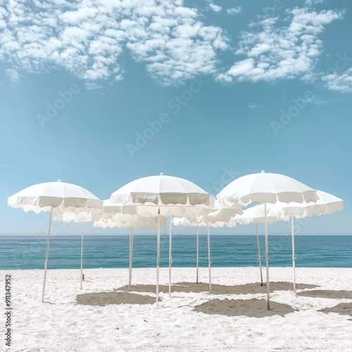 white beach umbrellas under clear blue sky