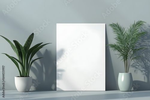 White blank vertical rectangle mockup on a grey background with soft shadows, 3D rendering