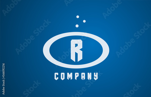 white blue R ellipse alphabet bold letter logo with dots. Corporate creative template design for business and company