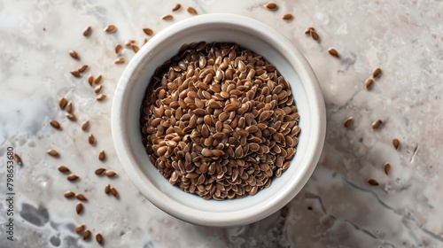 White bowl with whole flax seeds from above