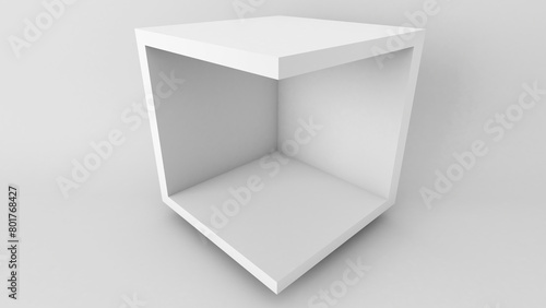 White box-shaped room on a white background. ,3d rendering