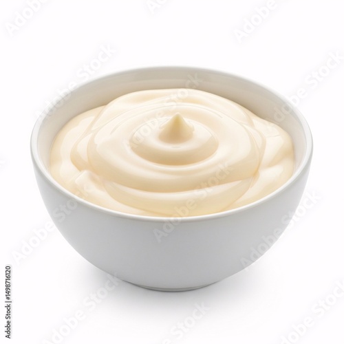 White Ceramic bowl with natural-colored mayonnaise, front view