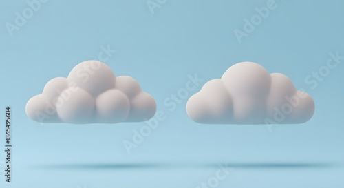 White Clouds Illustration on Light Blue Background Minimal Weather Concept