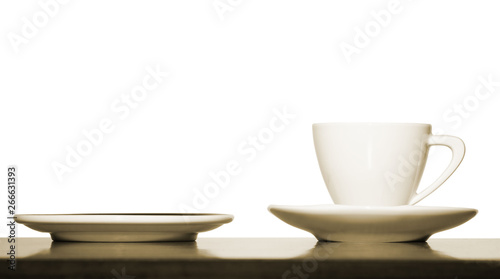 White coffee cup and plate on white background, isolates