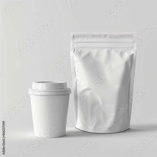 white coffee paper packaging 3d, isolated on white backgroun high quality photo for a mockup design, white background, studio background, sharp and clean focus, highly realistic