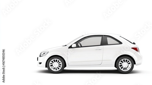 White compact car on white background isolated 3 d render