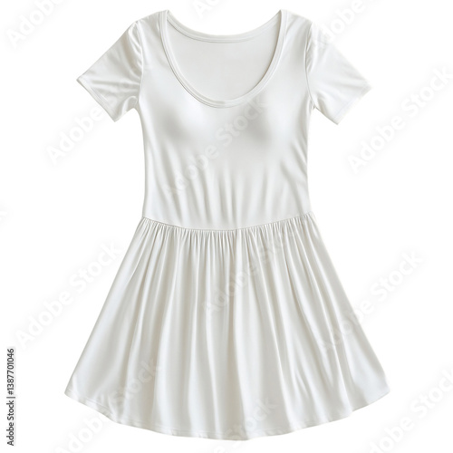 White Cotton Dress with V-Neckline Isolated on Transparent Background