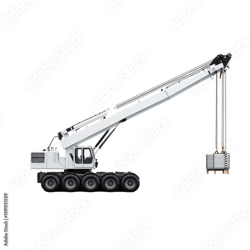 White crane lifting a concrete block isolated on transparent background