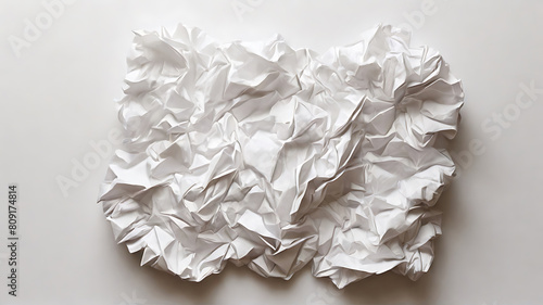 white crumpled paper on white background. realistic style,