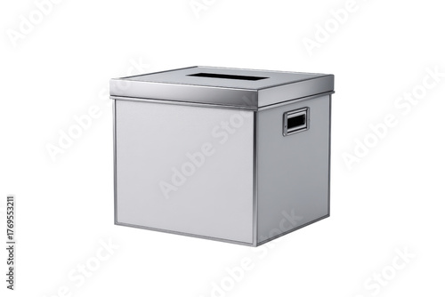White cube box with silver trim and slot on top on black background metal, Png, Isolated on Transparent Background, Cut Out