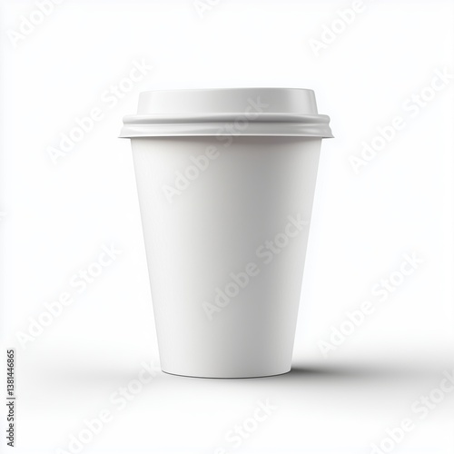White disposable coffee cup on white background with smooth design for drinks, beverages, and takeout containers
