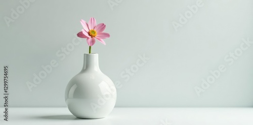 White empty bottle with a small flower in the neck, vase, elegance