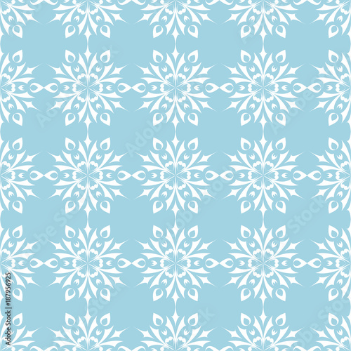 White floral seamless design on blue background