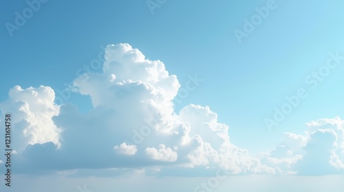 White fluffy clouds in blue sky on sunny day. Natural sky background with serene atmosphere. Ideal for design and print