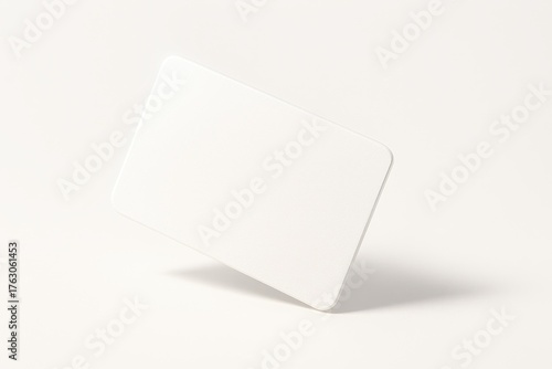 White gift card hovering above surface at a gentle diagonal tilt on pure white