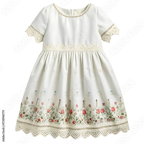 White girls dress with embroidered wildflowers and lace trim details children clothing