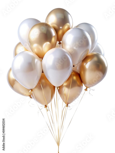 white gold balloons isolated on transparent background cutout