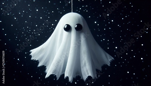 White hanging ghost cloth decorated with black eye cloth for Halloween holiday.