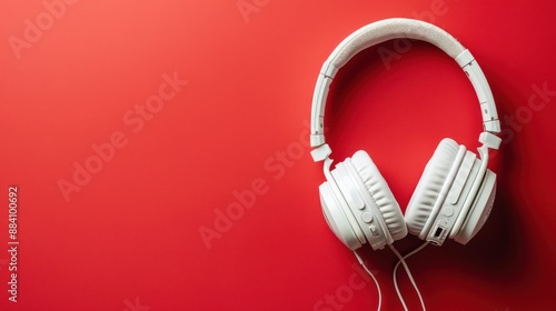 White Headphones on Red Background