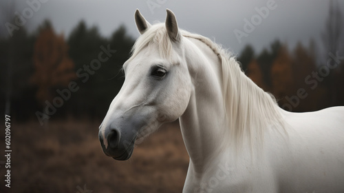 White horse on the ranch close-up. AI generation