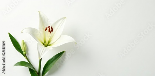 White Lilium flower on a pure white background, pure white background, garden flowers, flower arrangement
