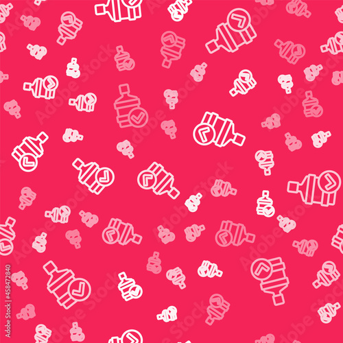 White line Big bottle with clean water icon isolated seamless pattern on red background. Plastic container for the cooler. Vector