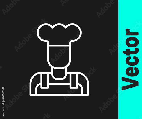 White line Cook icon isolated on black background. Chef symbol. Vector.